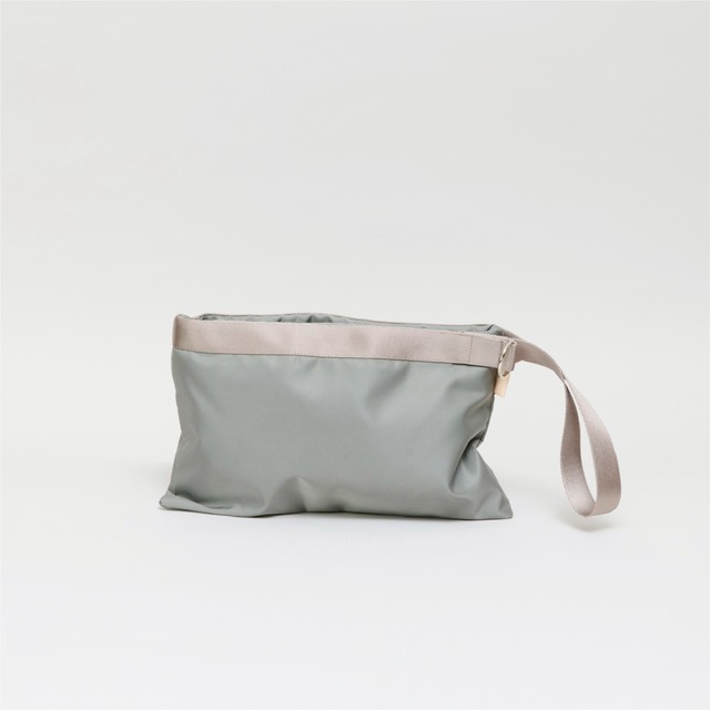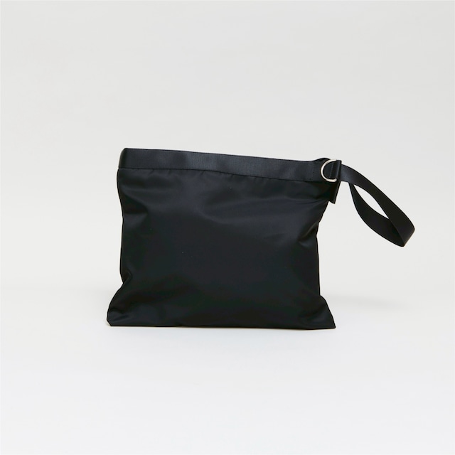 Size H:29cm×W:37cm×D:13cm H45cm×W:37cm×D:13cm (トート時) Color BLACK / SILVERGRAY Material NYLON 100% プラダ・エルメス・グッチなど世界のラグジュアリーブランドが認める、イタリアの老舗生地メーカー「リモンタ社」のナイロン生地を使用。シルクのような光沢とタフさを兼ね備えた上質なナイロンがもたらすフィット感。 良い生地だからこそ日常使いして欲しい思い制作しました。 通常はクラッチショルダーとして使用し荷物が多くなったらトートにして使えるバッグ。底が見えてもいいように、底はレター風の折り方になっております。 表地の後ろ見頃には携帯が入るサイズのポケットが3つあるので、よく使うものを仕分け、フラップの折り返す方向でポケットを隠したり表に出したりできるようになってます。