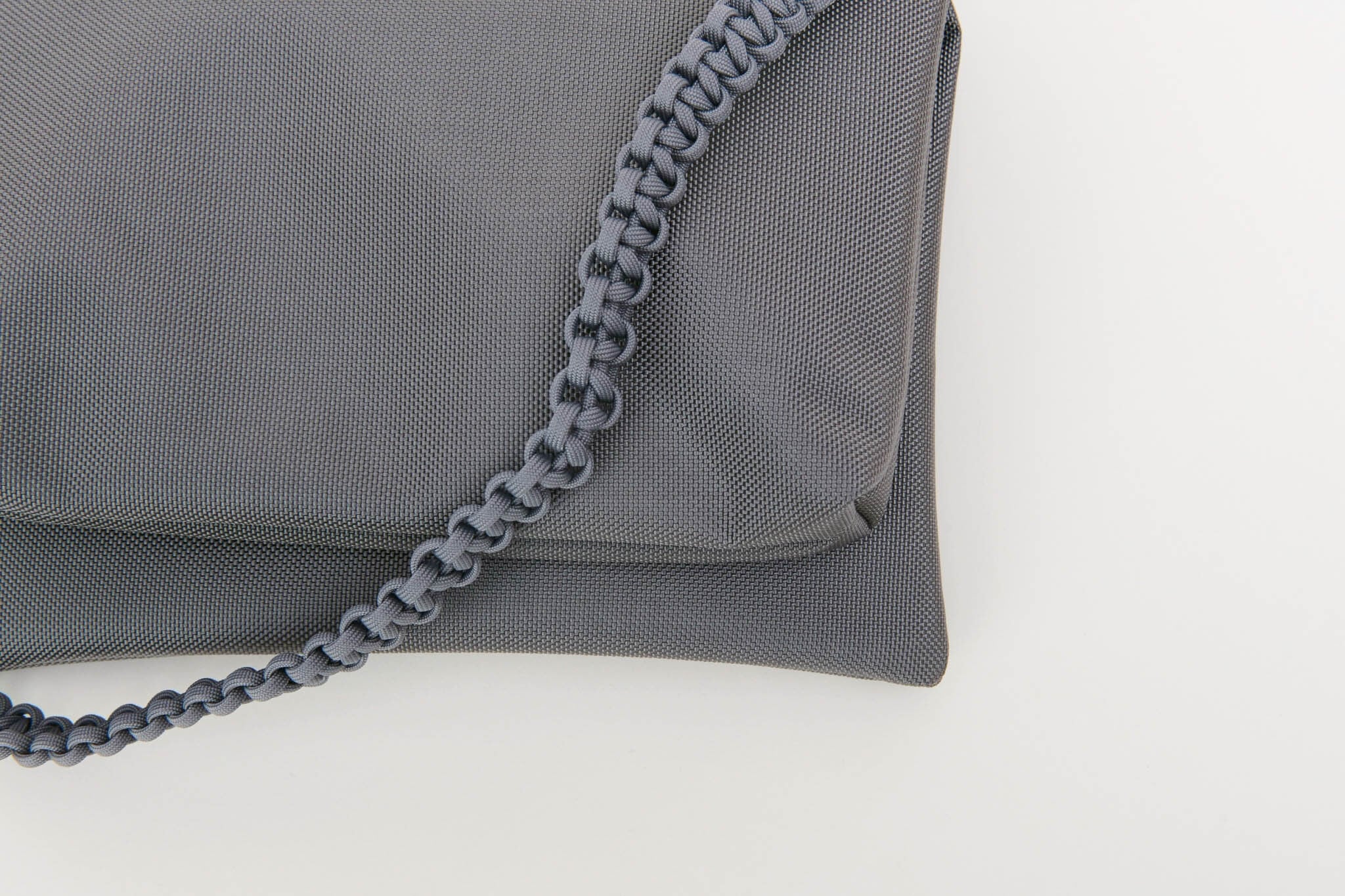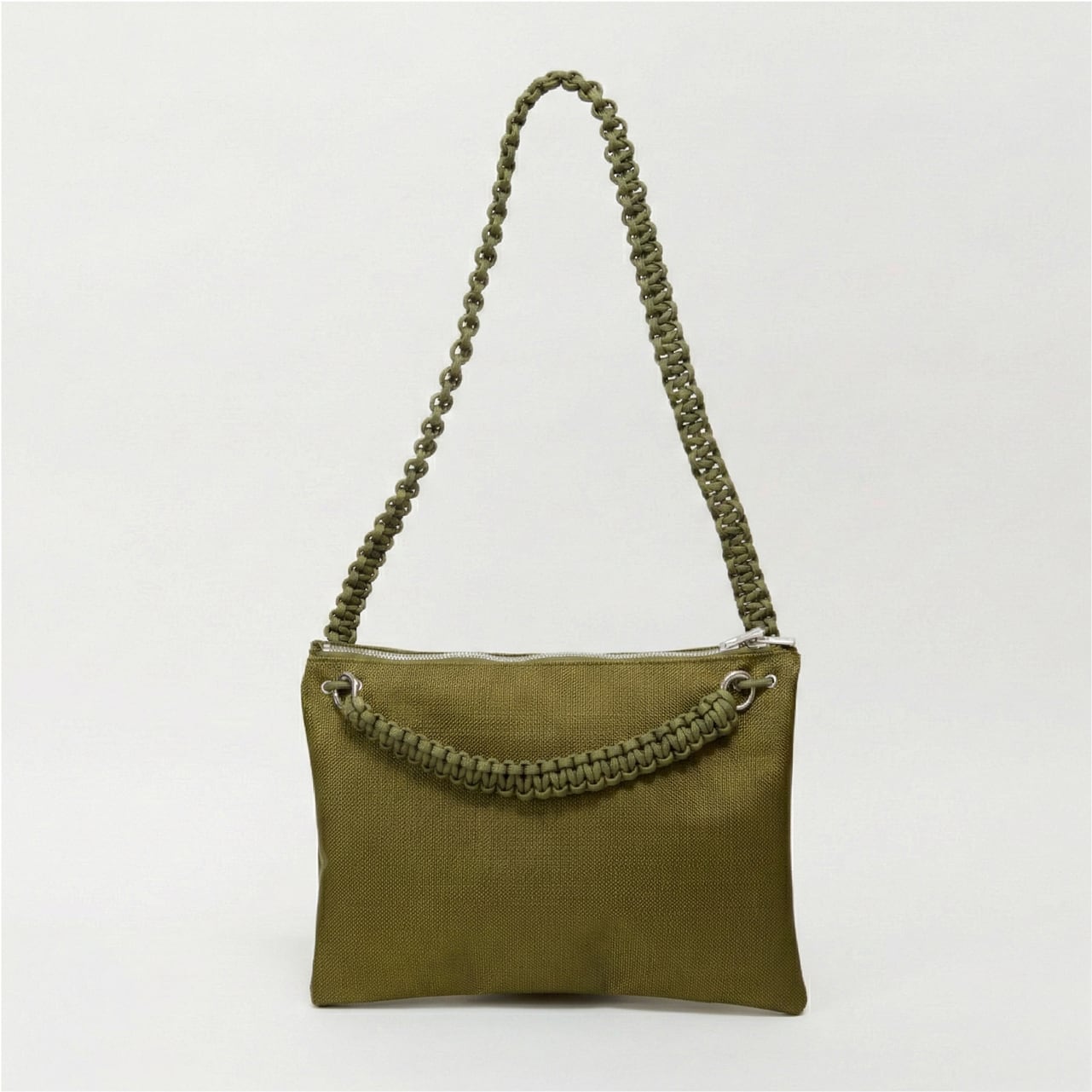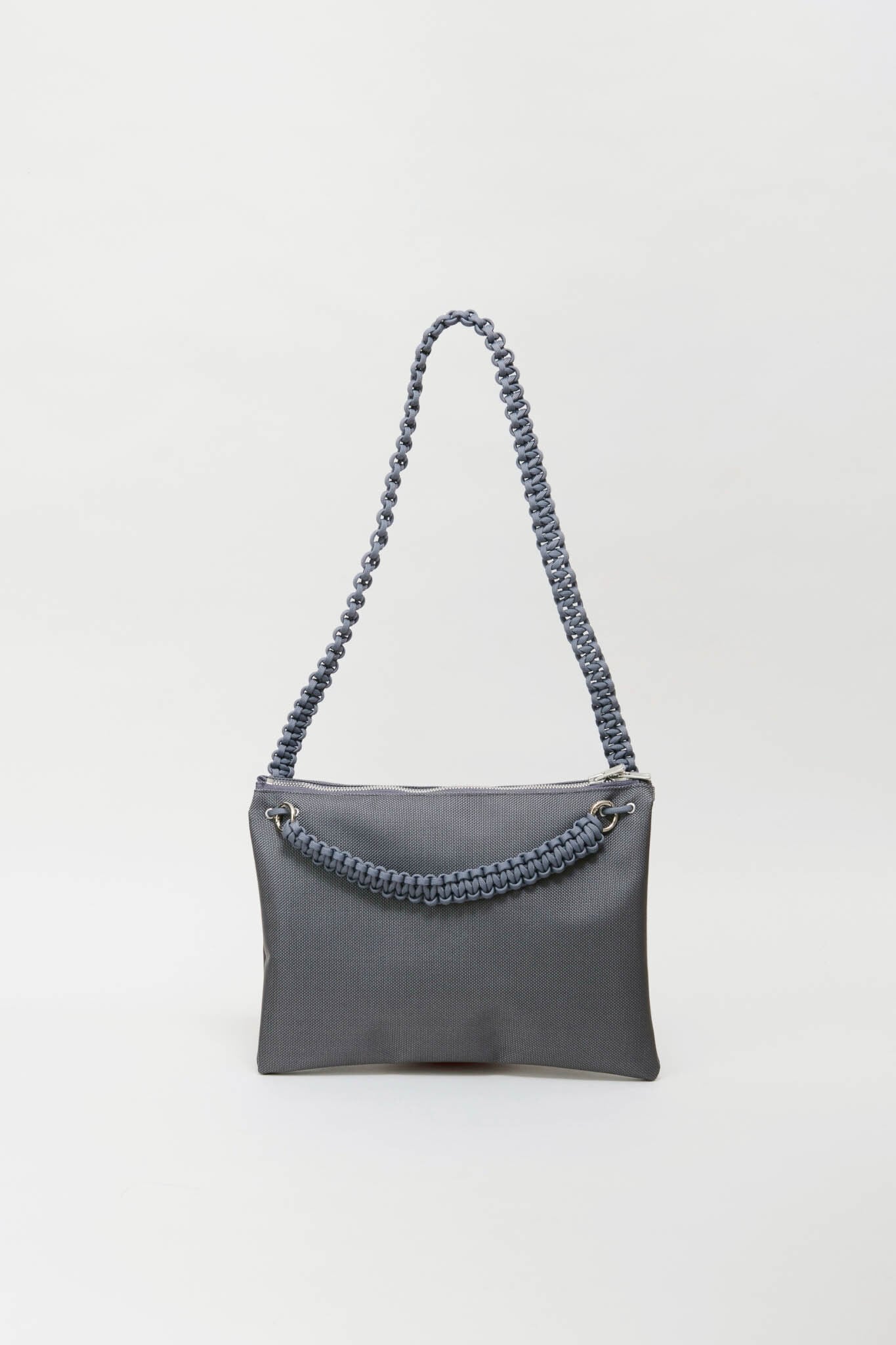 さらに、合計13mの紐をすべて手編みしたこだわりのハンドルや、自由な位置で開閉できるダブルファスナーを採用。二つ折りにすると中央に仕切りが生まれる構造で、デザイン性と優れた実用性を兼ね備えたバッグです。