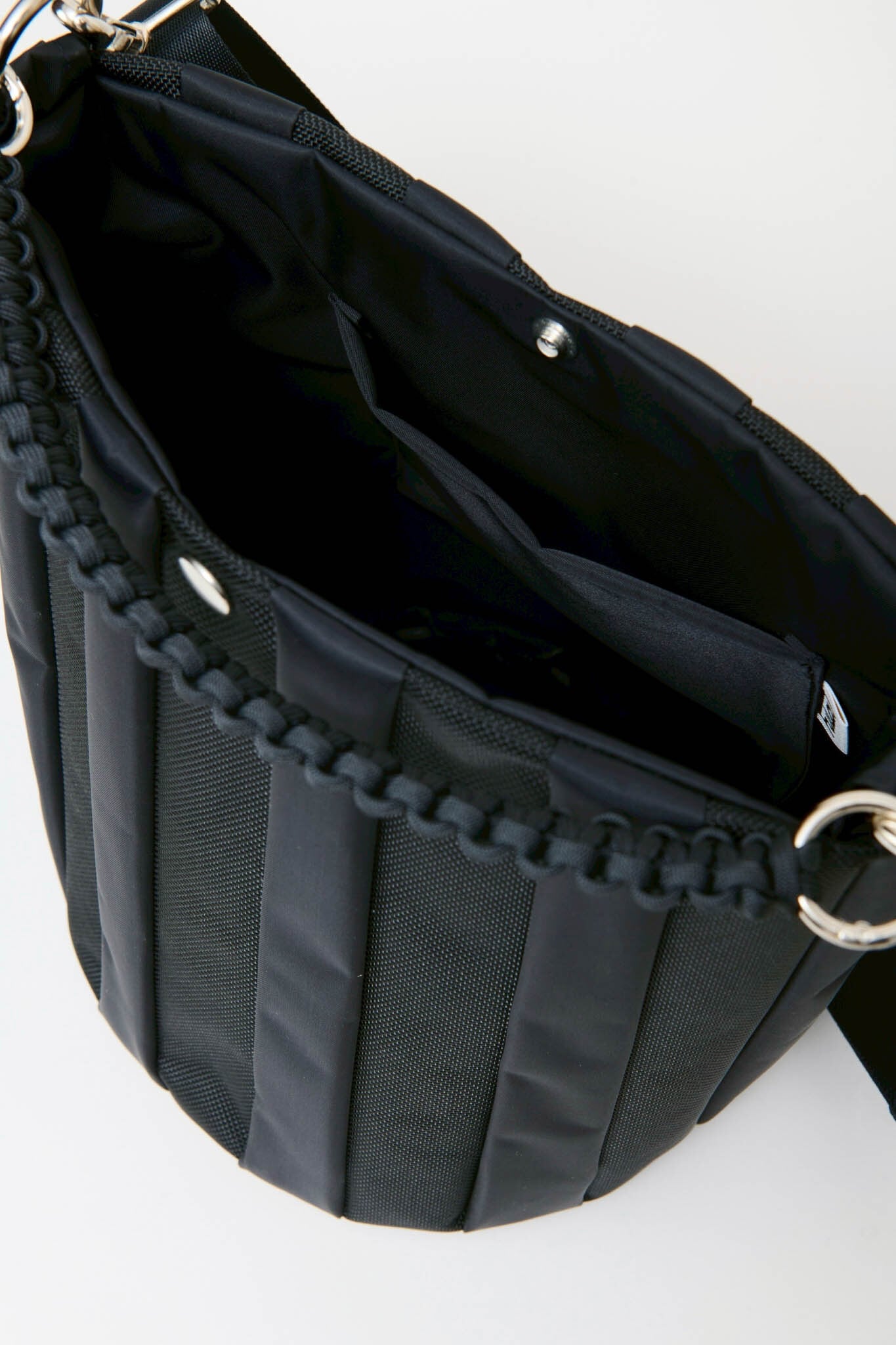 密度の違うナイロンを縫い合わせることでドーム状の膨らみができ、立体感のあるテキスタイルを制作。